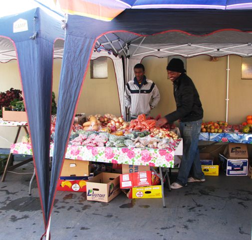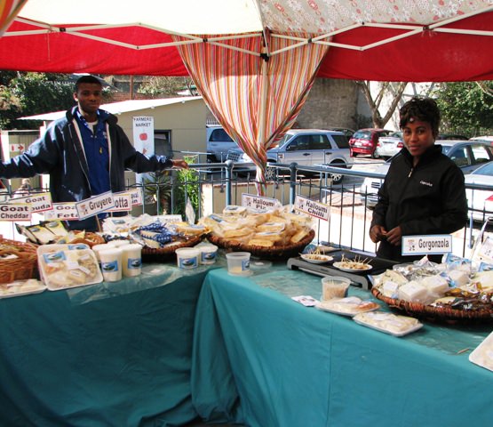 It’s small, a tiny fraction the size of the Dupont Circle market in DC. But I was pleased. I bought eggs, celery, bell peppers, yogurt, and cheese (chili-spiced haloumi!), and chatted with the vendors. The honey vendor extolled the virtues of honey from various flowers and regions in South Africa. I was charmed. I bought a jar of the creamed variety even though we have about five jars of honey at home already.