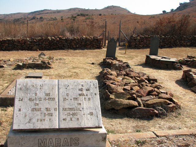 We found a trail and followed it up a hillside, stopping briefly to inspect the Marais family cemetery. The grave stones were in Dutch. Joe translated.