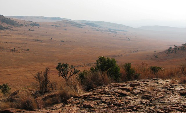 We continued up the hill, listening to the hiss of the waist-high grass in the wind. Nothing else grows there but fire-resistant aloe plants and the occasional stunted cabbage tree. We saw animal droppings – wildebeest and blesbok, according to Joe – but didn’t encounter another soul.