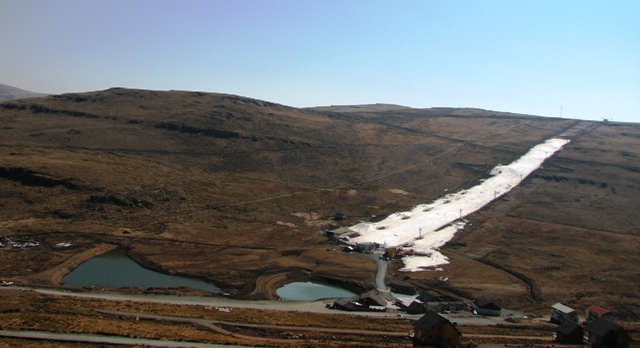 The temperature began to drop as we drove into the mountains. I glimpsed one or two patches of snow beneath rocky outcroppings. Then we rounded a bend and saw…a ski lodge! In the middle of the brown mountainside was one neat strip of snow, complete with ski lift and quaint chalets. Several skiers swooshed down the hill. It was an odd sight.