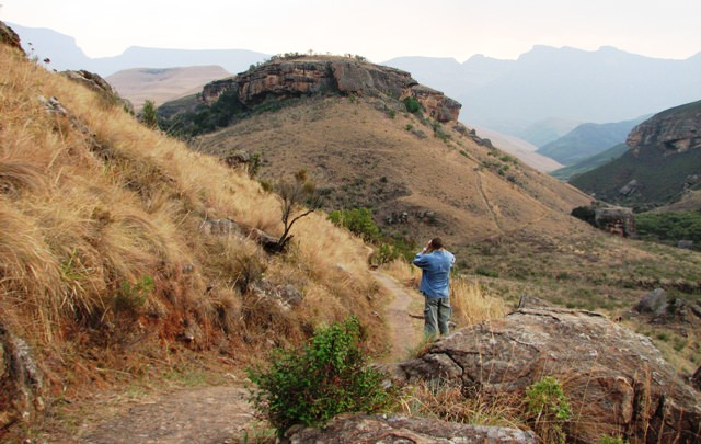 We arrived at the park in the late afternoon and hiked for two hours along the Bushman’s River. We climbed to the top of Giant’s Ridge, where we watched a pair of endangered bald ibis soar down to their roost as the sun set behind them. Joe was in ecstasy.