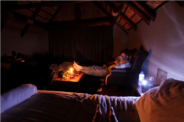 Just as I set down the last of our bags, the room went black. Power failure.