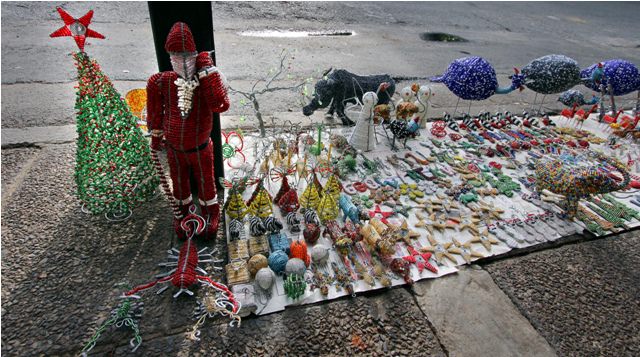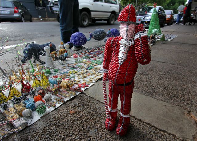 I took several shots of Felix’s work and was eventually convinced to buy my first South African Christmas decoration, a small beaded reindeer.