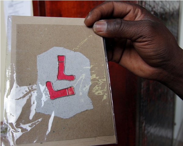 His name was Lovemore and he makes these beautiful paper cards. He sells them for R10 each. I bought two – this one and another one with an elephant on it.