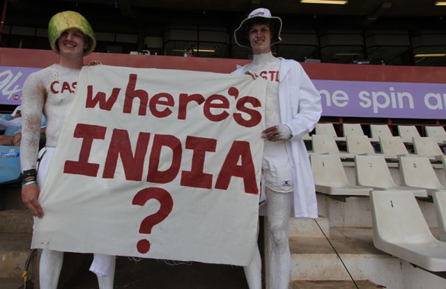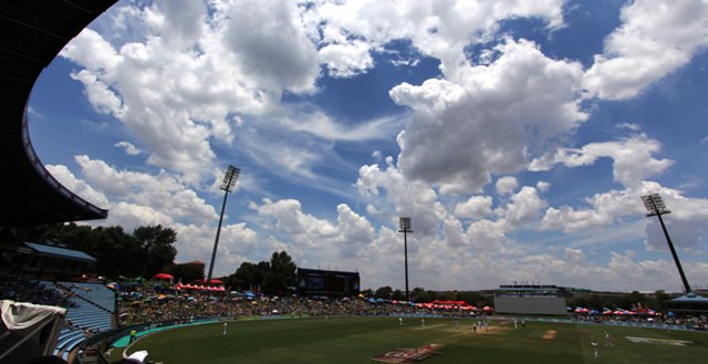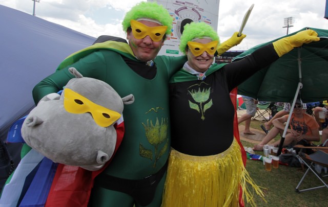 I made my debut as an international sports fan this weekend. Joe is covering a cricket test match between South Africa and India and I went along. The match started on Thursday and will probably last through Monday. It poured with rain on Thursday so I delayed my debut until Friday.