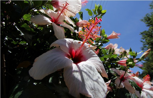 My favorite hibiscus bush in the neighborhood. Photo courtesy of Joe.