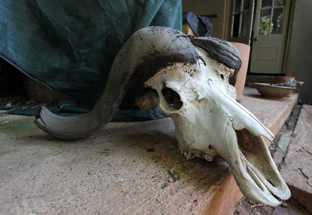 Chris’ one-year-old grandson. He’s a small person but the enormity of the vegetation makes him look even smaller.The garden was filled with interesting artifacts like this buffalo skull. Apparently Chris, who is an experienced wilderness trails guide among many other things, had an altercation with the buffalo that eventually led to the buffalo’s demise. I’m not sure of the details but I thought the skull made a nice picture.Chris’ property also includes a one-room B&B. It’s pretty amazing – I would like to live there myself if I didn’t have my own awesome Melville house. If you’re looking for a place to stay in Melville, let me know and I’ll give you the details.
