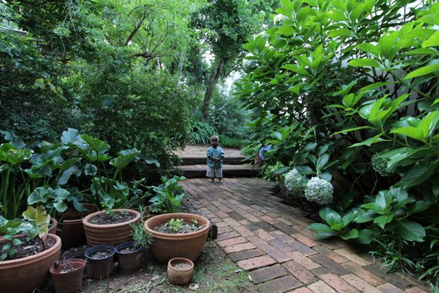 Melville is full of interesting houses, lived in by interesting people. I’m slowly integrating myself into the neighborhood but I haven’t had the chance to visit many other Melville homes yet. So when Chris Green, a tour operator who lives around the corner, invited us over to see his backyard jungle, I jumped at the chance.