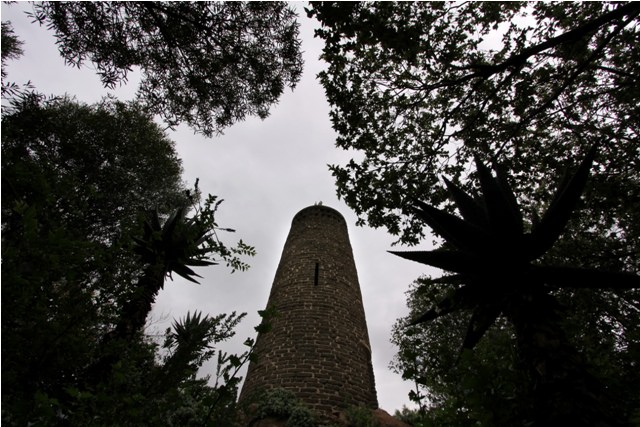 We chatted at the house for a little while and then took off on foot. Our first stop was Oppenheimer Gardens, a city park across the street, where we received a tour of the Oppenheimer Tower and the Credo Mutwa Cultural Village.