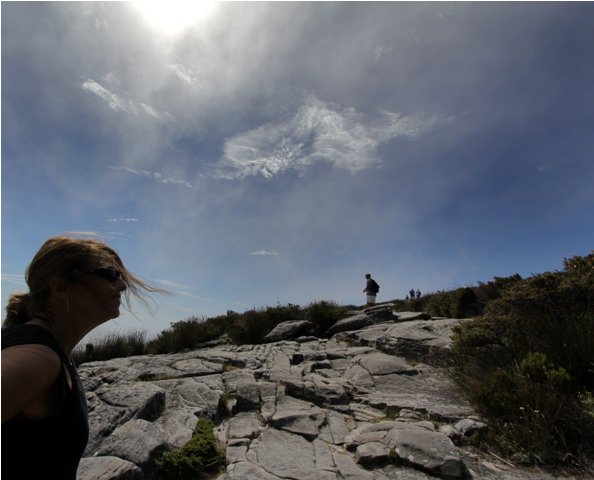 It was hot and sunny with a light breeze. Paul told us that the weather can change at any moment so we should get up Table Mountain while the going is good.