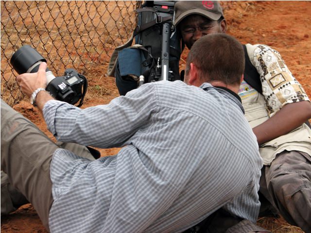 Martin stalked around his cage for a while, half growling and half roaring. We watched, transfixed. He moved through a doorway into an adjacent enclosure. Joe crept closer to get a better shot and Spokes, a camerman for Reuters, followed. Martin payed them no attention, at first.