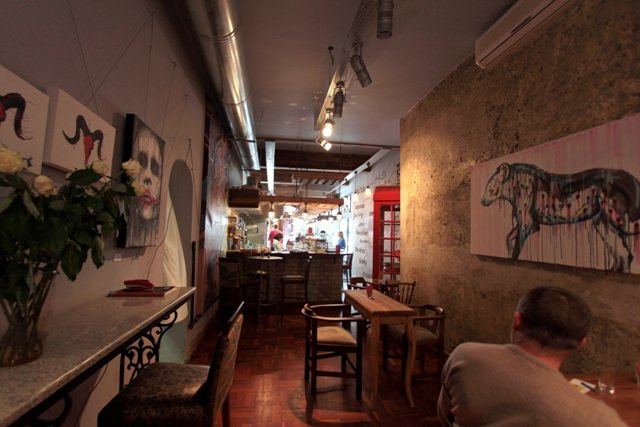The Odd Café is a coffeehouse, restaurant (with all-day breakfast – score), and art exhibition space all rolled into one. It is indeed odd, in a very good way. The furniture is mismatched, the music is eccentric, and the menu is adventurous. It’s decorated with graffiti on the outside and has a London telephone booth on the inside.