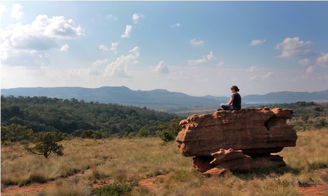 Mountain Sanctuary Park is a privately owned nature reserve in the Magaliesburg Mountains, about an hour from the town of Magaliesburg. To get there we had to cross Breedt’s Nek Pass, on a rutted, boulder-strewn dirt road. The views are great but this road is not for the faint of heart, especially after rain. We passed a hapless couple getting their VW hatchback hauled out of the mud by a tow truck.