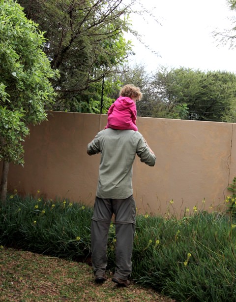 Joe and his niece/goddaughter, who I will call Zoe, peaking over the garden wall at Jim’s house.