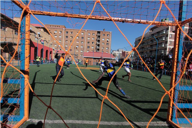 Mandela Day is about making a difference in your community, and the tournament fit that theme perfectly. The stands were filled with enthusiastic fans, primarily kids. The teams, made up mostly of young men living in buildings around Hillbrow, were competitive and sportsmanlike. Volunteers provided medals and equipment for the competitors and snacks and drinks for the fans.