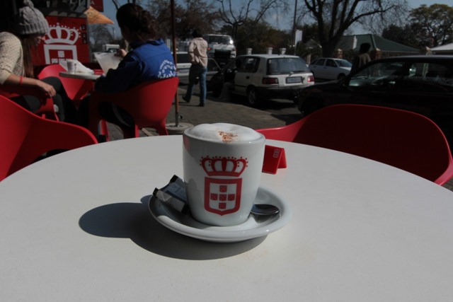 South Africa is a Starbucks-free country. (Well, almost. I’ve heard rumor of a lone Starbucks somewhere in Joburg’s far northern suburbs. But I won’t believe it until I see it and I don’t get up that way much.) Coffee to go, while occasionally available, is still a novel concept here. And when you order a cappuccino at a restaurant or café in Jozi, odds are you’ll get more than an espresso with foam on top. You’ll receive a work of art.