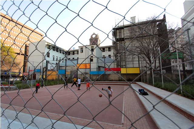 I thought about my choice yesterday afternoon when Joe and I visited Ernest Oppenheimer Park, a place that epitomizes what I love about Joburg. Like many other parks in the city centre, Oppenheimer Park used to be a nice little piece of green space, then became crime-ridden and filthy. Last year it was rehabilitated and re-opened, incorporating characteristic “New Jozi” style.