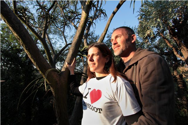 I thought about my choice yesterday evening, when Joe and I took an anniversary self-portrait in front of our aloe barberae tree in the back yard.