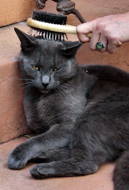 Joe’s elderly mother – a great cat-lover – came for a visit last weekend. We hadn’t told her anything about our kitty crisis. I took her out onto the deck and the cat came to pay his respects. Joe’s mom took one look at the cat and said, ‘Is your name Smokey?’