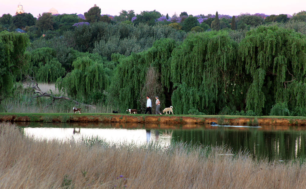 at the risk of sounding ancient… that park has been an incredible part of my life for years and years, as a student we’d go there with film school mates and make zany stuff, it was all wild grasslands… the city either had too little money or was deliberately not developing it. Then when my kids were born 30 yrs ago we went there for picnic parties, still mostly veld grass, then in early nineties we got another dog.. so began regular walks. The middle dam was built just before then and over time from just a few dog walkers, and I mean a few, like five or six of us on a busy afternoon it grew and grew, until one day I counted twenty five cars parked in the parking lot on Orange rd! Imagine? At first I was resentful (mea culpa), that the serenity and sense of solitude was ending but people kept turning up and celebrating the fact of this marvellous place. Model airplane people, kite flyers, Church groups, runners, family picnics, and most of us are really cool.. there have been and were even back then the bad guys and now that the park is so well used the security is better, but it is still a large area so don’t wander around alone or after dark… the park is usually locked at night now. There were two notorious attempts to carve it up by the city parks dept in direct contravention of the deed of grant to the City. They cunically tried to do that over a long weekend in december. The Geldenhuis Family donated it to “all the people who live in JHB” (note no reference to racial groups..see above comment about lack of development under the National Party) one other stipulation was that is should remain extant as one piece of ground and never be portioned off or limited. The whole park has to remain whole. Alert dogwalkers put a stop to that subterfuge and then the city tried it again over another long weekend! An easter weekend in a bizarre demonstration of the arrogance and sheer disregard for a court order! The same group blocked that too, the legacy is an alert and engaged public who resolutely defend our public space from our elected officials and their schemes! Weird huh? The other legacy is the string of fence posts from the southern end of the composting area. small minded officialdom not removing their mess up. The palisade fencing made for this barrier and paid for by the unsuspecting public was used to repair sections of the fence along Beyers Naude and Judith rd which regularly are damaged by cars that loose control and crash through there. I will stop this polemic and thank you once again for such a wonderful blog.