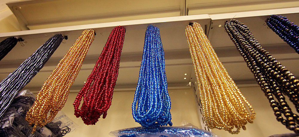 Above this fabric shop, atop a winding rickety staircase, is a massive bead shop.