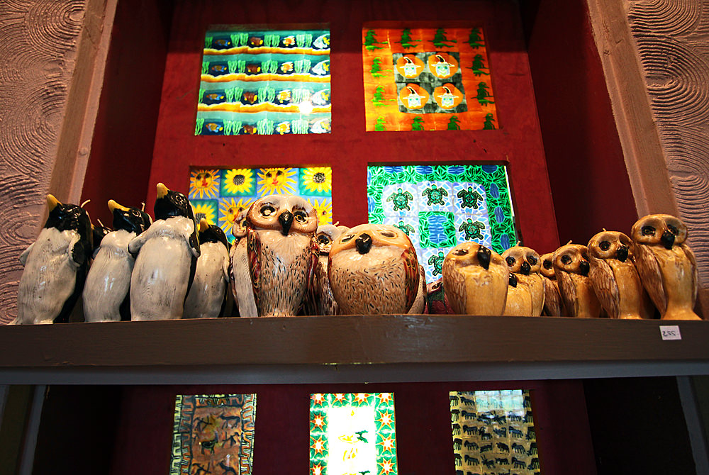 Beautifully back-lit penguin and owl candles, for sale at Swazi Candles.
