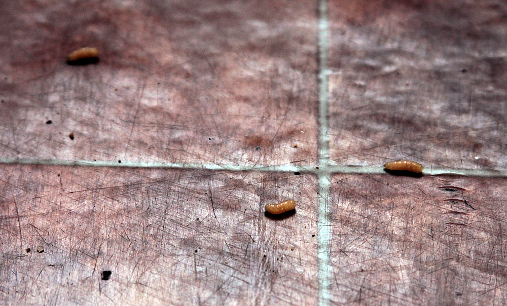 The worst was over. I watched the swept-up maggots (still alive, of course, as no broom can kill a maggot) wriggling on the pavement outside. I looked into the kitchen and spied a few strays. I began to think that maggots make interesting photography subjects. I fetched my camera.