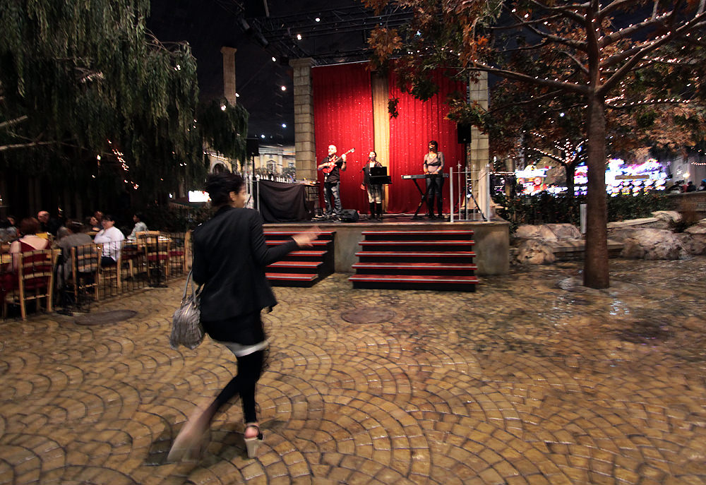 Nightlife at the Monte: A lone drunk girl dances to a lonely adult contemporary rock band.