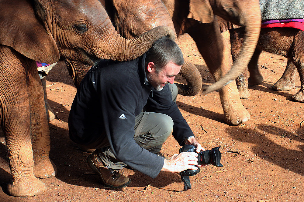 Jon at the Elephant Orphanage in Nairobi, Kenya, 2008. The photo was taken by Katrine, a good friend of Jon’s who I hope to meet in person someday. I’m grateful to her for this photo. It says so much about Jon.