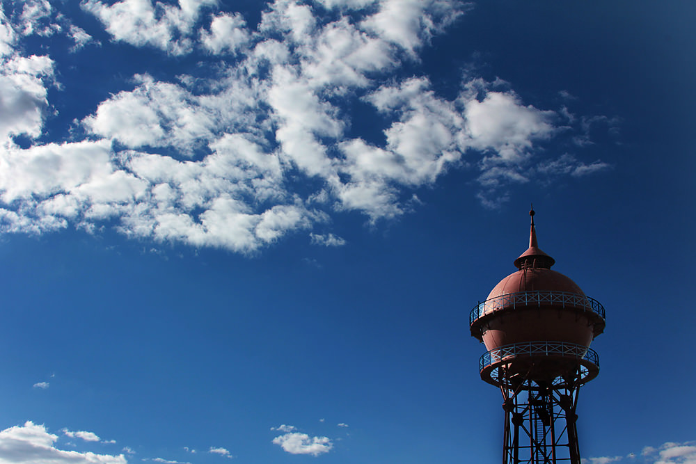 The new water tower. I can’t figure out when it was built. I only know this it’s newer (and less exciting-looking) than the old water tower. Perhaps someone can fill me in.