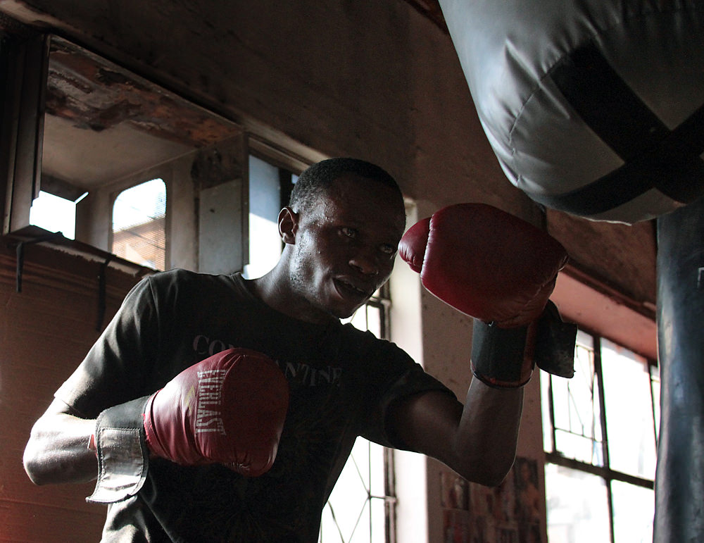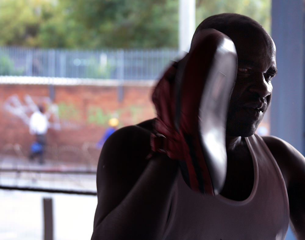 Today, George has devoted his life to training future boxing champions at his gym, the Hillbrow Boxing Club. Many of the guys (and girls) he trains are street kids who have come to Hillbrow and Yeoville from other parts of Africa, just as George did many years ago. The Hillbrow Boxing Club – a converted petrol station on Claim St., is George’s life. He works, eats, and sleeps there, along with several of his fighters.