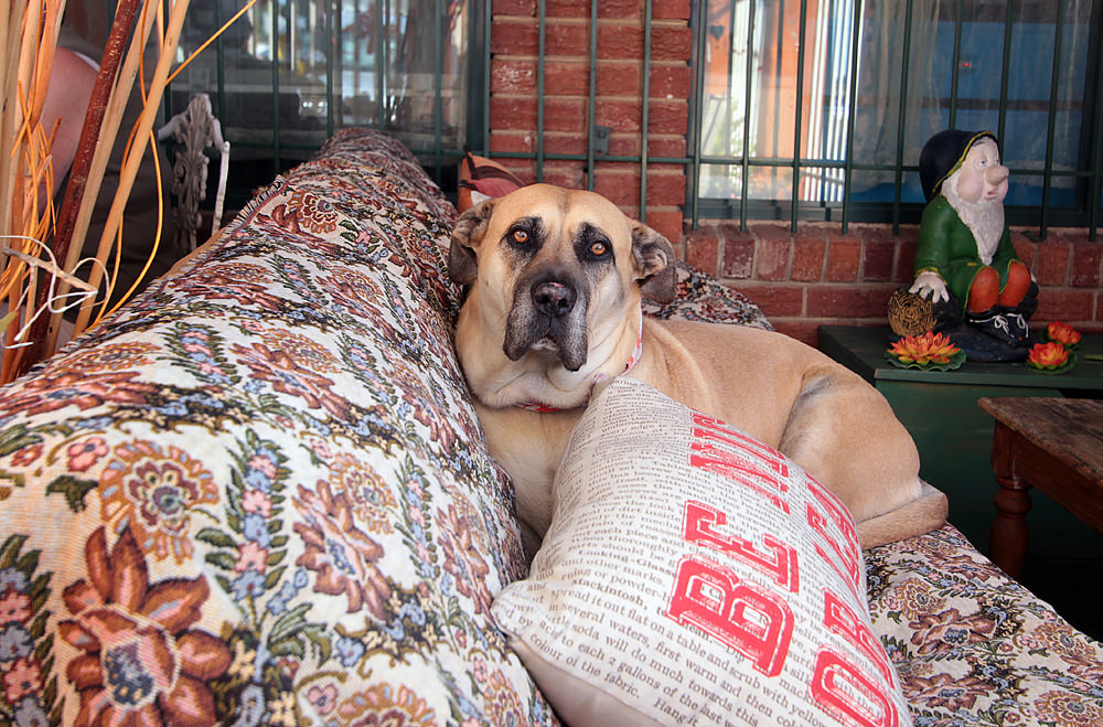 Amiga is a boerboel, a mastiff breed created by South African farmers (boers) to protect their homesteads. Funny that such a uniquely South African dog has a Spanish name. Somehow it suits her.