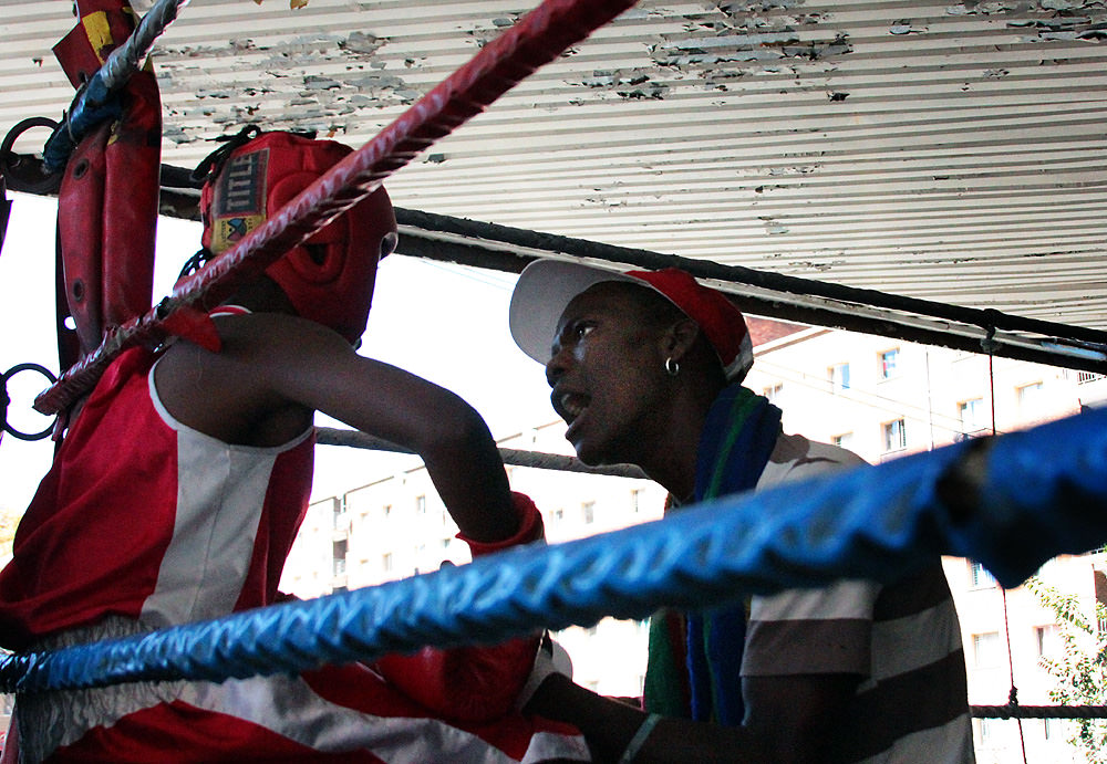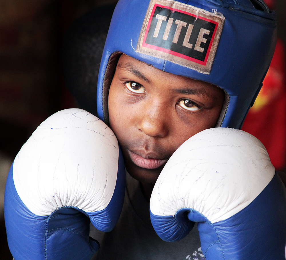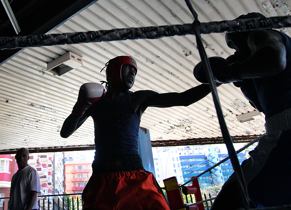 Sandile, the most photogenic boxer at the Hillbrow Boxing Club, hangs around the ring before the tournament. Sandile didn’t fight yesterday.