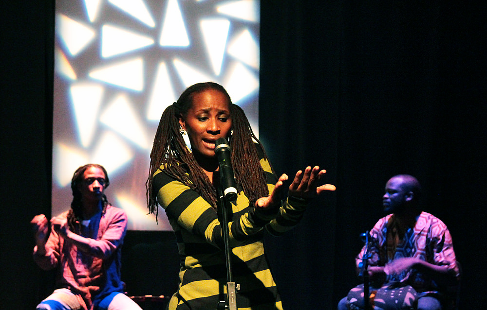 Colours of the Diaspora features well-known South African actress/poet Napo Masheane. Napo’s mesmerizing words and movements are the highlight of the show.