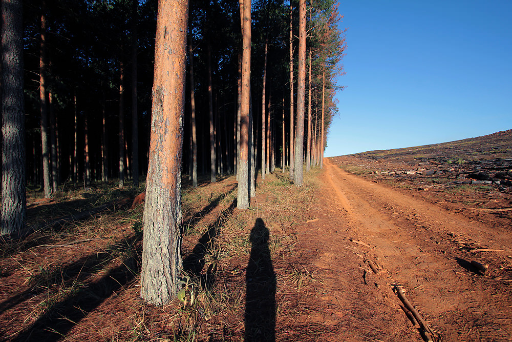 I’ve walked and driven through quite a few pine plantations in South Africa and Swaziland, and I usually find it depressing and disconcerting. The unnaturalness assaults my senses. It doesn’t help that the stands of tall pines are inevitably interspersed with barren hillsides dotted with jagged stumps, where trees have been recently been harvested. It’s the deadest African landscape you’ll ever see.
