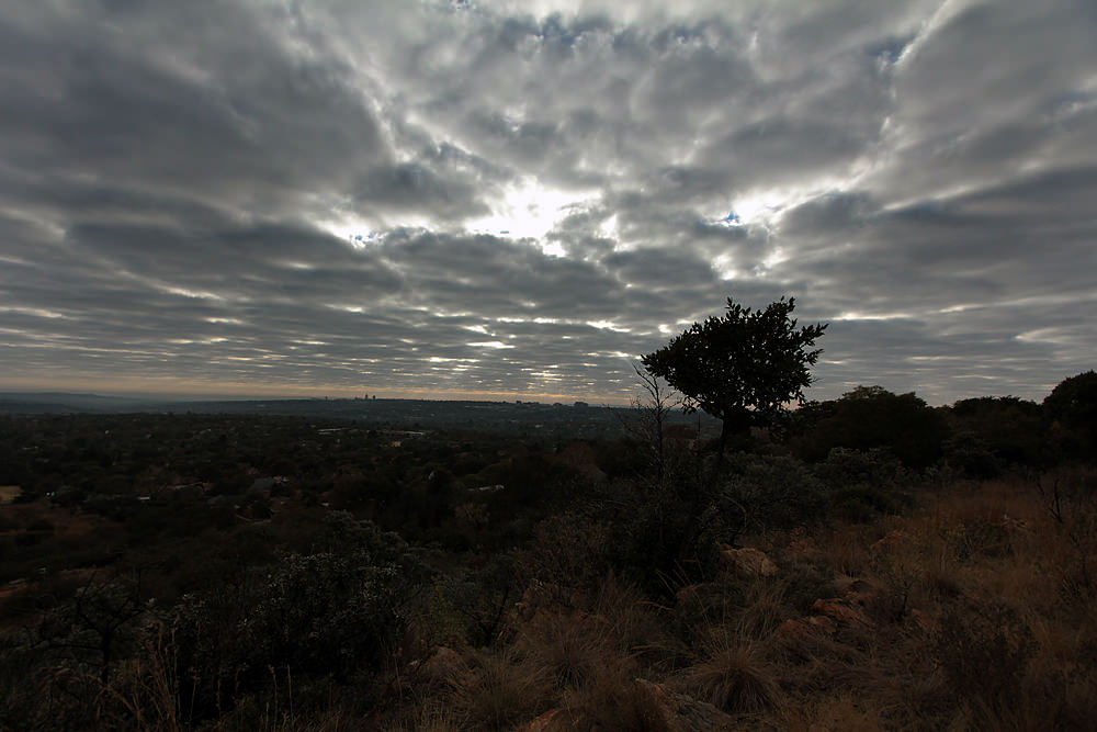 I took this photo early in the morning on the central section of the Melville Koppies, which is closed to the public except on special open days. (The eastern and western sections of the Koppies are open seven days a week.) This past Saturday morning was an “Artists’ Day” on Koppies Central – creative types were invited to come and wander around, take photos, or paint the scenery. Dramatic clouds provided the perfect artistic backdrop.