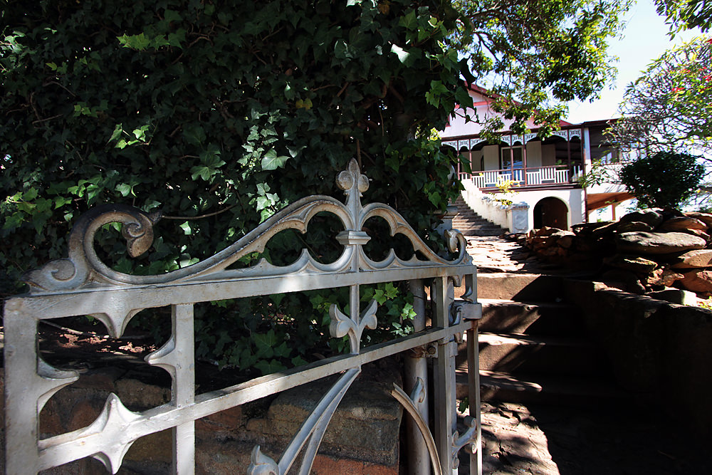 The gate leading up to Belhaven, the nicest house on the Barberton Heritage Walk.