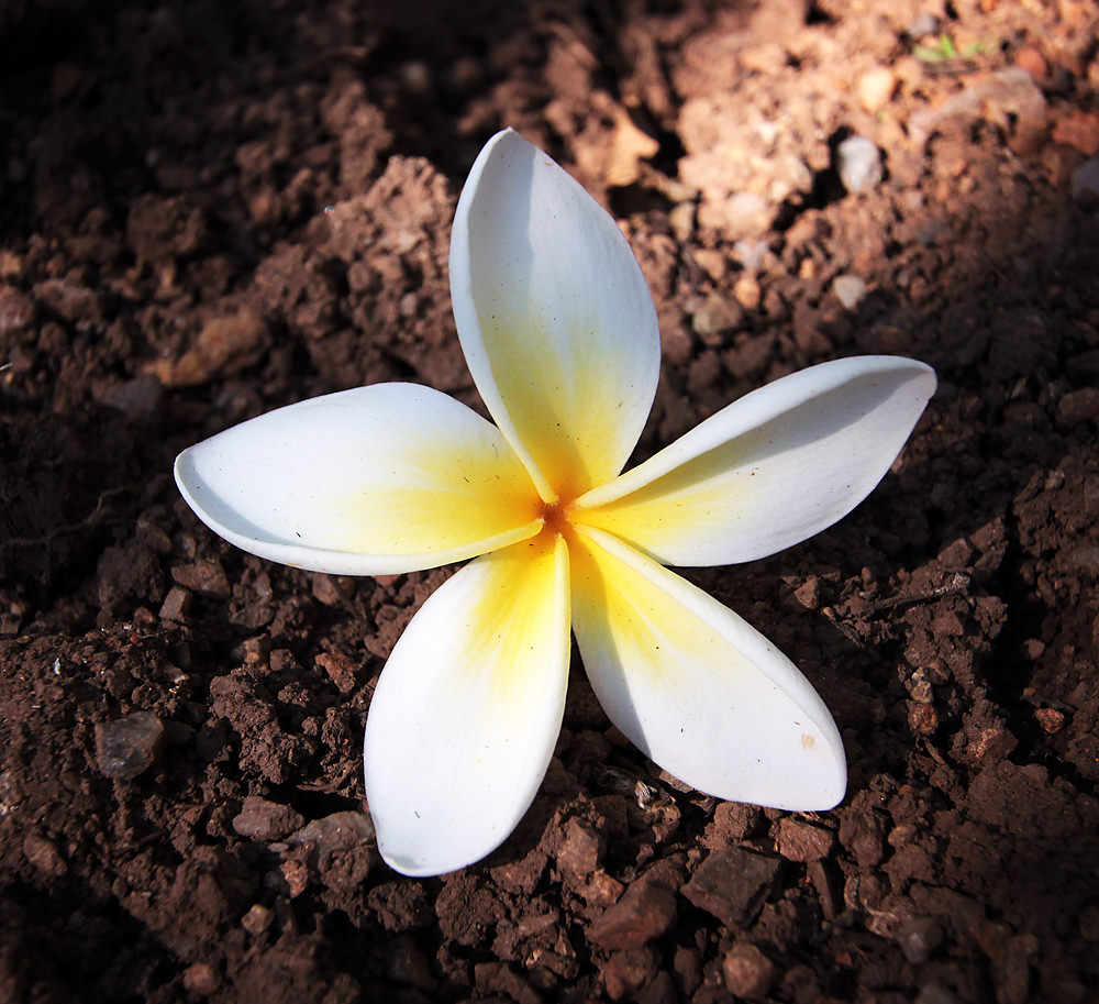 A pretty (and beautiful-smelling) frangipani blossom outside Stopforth House.