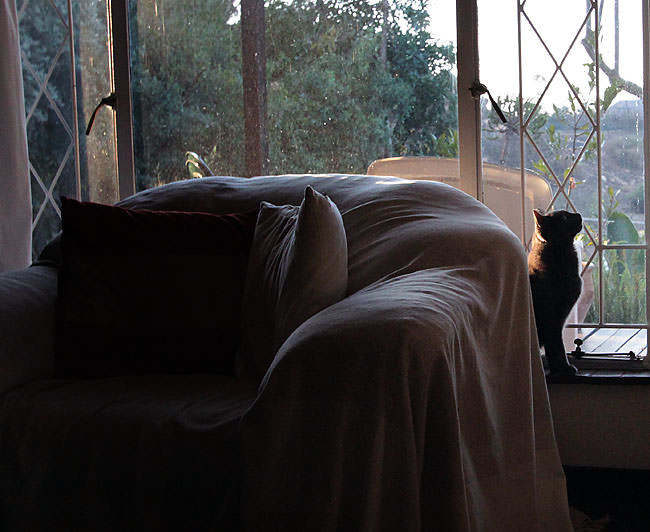 A glimpse of my funny tail as I dash angrily past Heather on the couch.