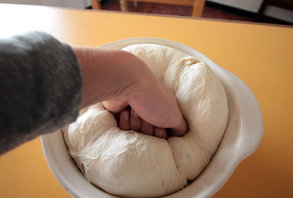 Punching the dough down. Sorry for the bad photo, it’s hard to punch and shoot at the same time.