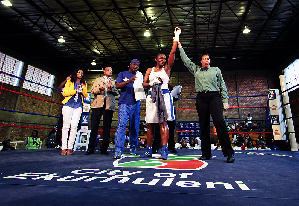 Two of the fighters who competed in last weekend’s professional women’s boxing tournament – Lillian “Lily” Molala and Phindile “Zulu Girl” Mwelase – are members of the Hillbrow Boxing Club. I went to the tournament to cheer them on.