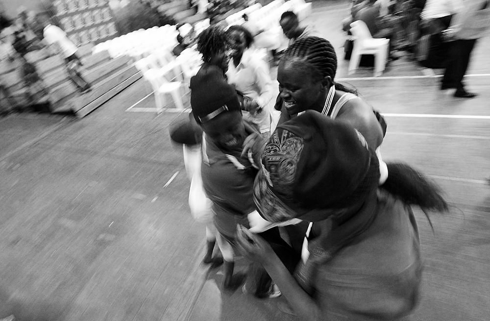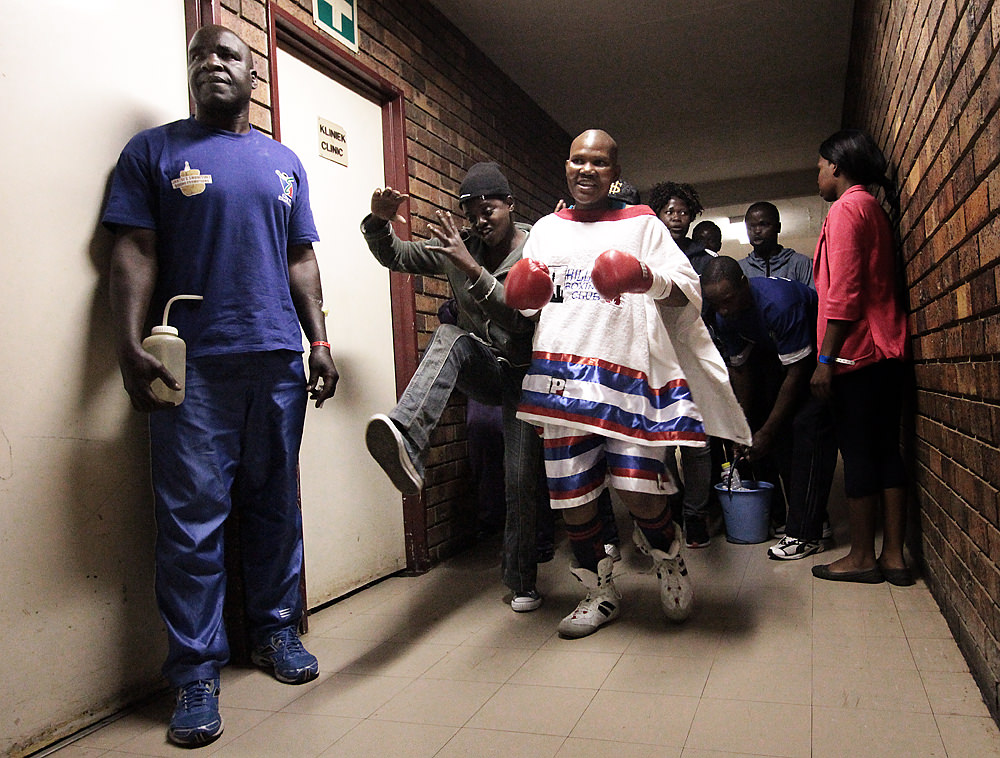 Lily, whose record was 4-6 before Saturday’s matchup, had the fifth fight of the evening. As her name was announced, I heard chanting and cheering in the hallway. A conga line of coaches and Hillbrow boxers emerged, flanking Lily on all sides. It was unexpectedly festive.