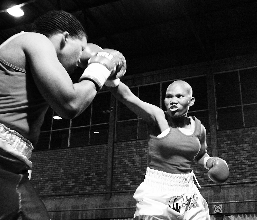 Lily prepares to deliver an uppercut to her opponent, Thato Mohlala.