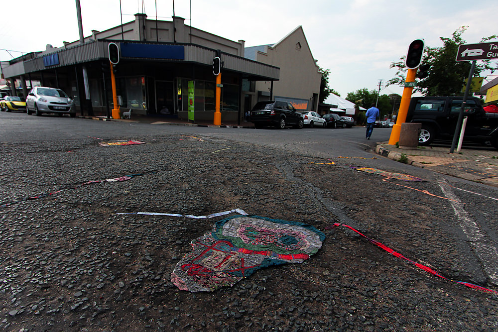 When I say there is street art, I mean that literally. The art is literally woven into the cracks and crevices of the street. The artist’s name is Engela van der Hoven.