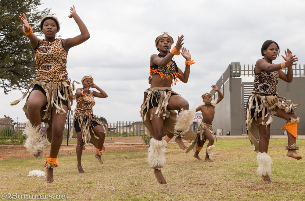 The Tswana dancers (Tswana is one of South Africa’s 11 official languages, and also one of its main cultural groups) performed first, in an amphitheater on a hill overlooking the rest of the township.