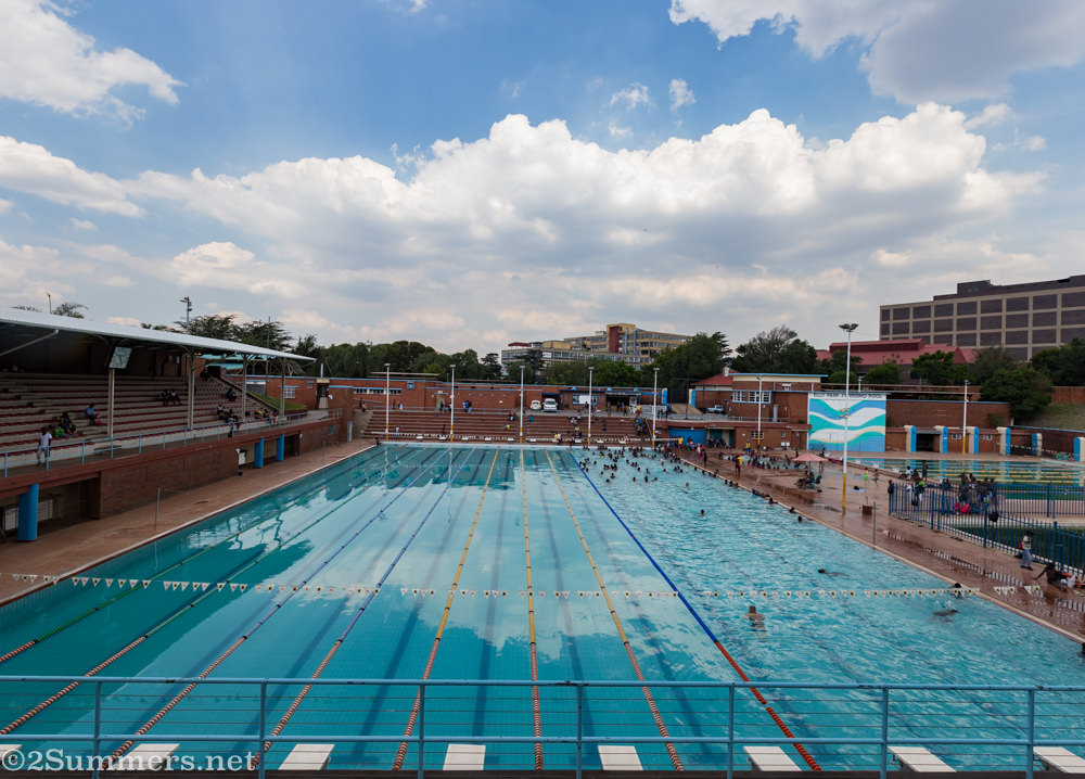 Ellis Park Pool is smack in the middle of downtown Joburg, in a very underprivileged neighborhood. But it’s huge, beautiful, and relatively well-maintained. It’s also heated.