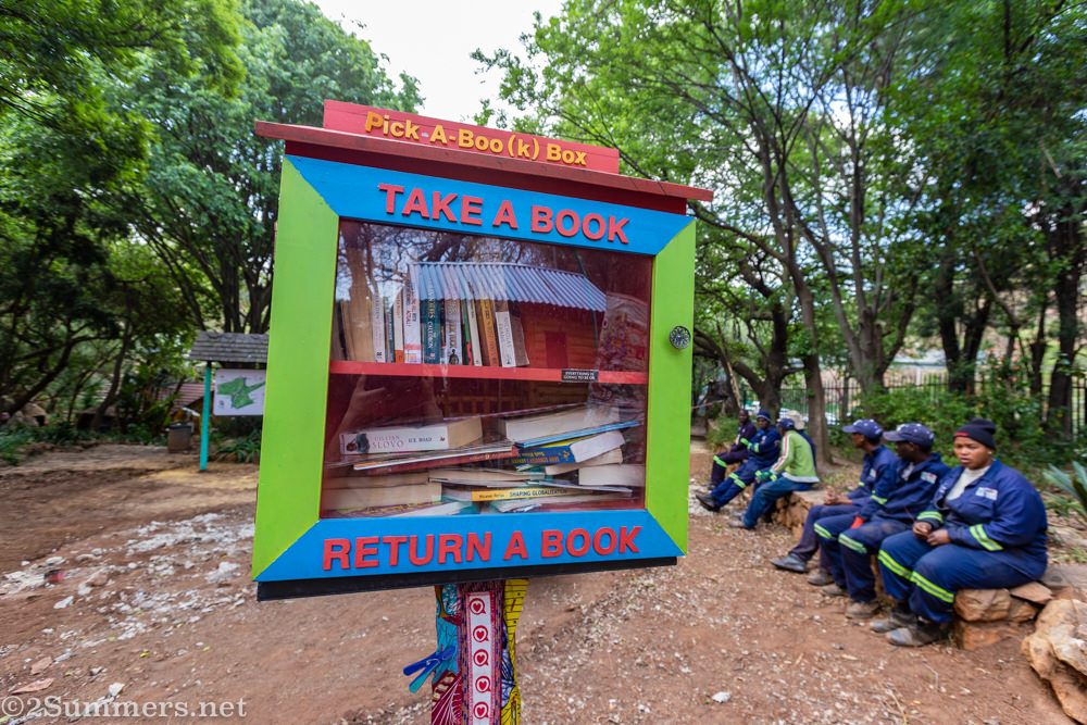There are seven or eight boxes scattered about – send me a message if you’d like their exact locations. But if you have books you’d like to donate, my number one Pick-a-Book recommendation is the box in the parking lot at the Wilds. Going there is a great excuse to visit what has become my favorite public park in Joburg. The box at Kingston Frost Park in Brixton is also fun to visit.