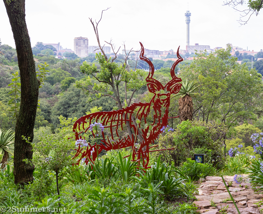 Then go explore this glorious park with abandon, admiring every indigenous flower and plant, every colorfully painted bench, every piece of public art, and every brilliant Joburg skyline view. Listen to the trees rustling and the frogs singing and the kids laughing.