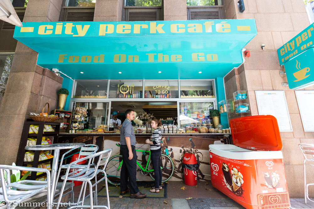 Our tour started and ended in Maboneng in front of Uncle Merv’s coffee shop. We cycled straight through the heart of the city, from east to west and back again, stopping at four coffee shops in the western/central CBD and Newtown.