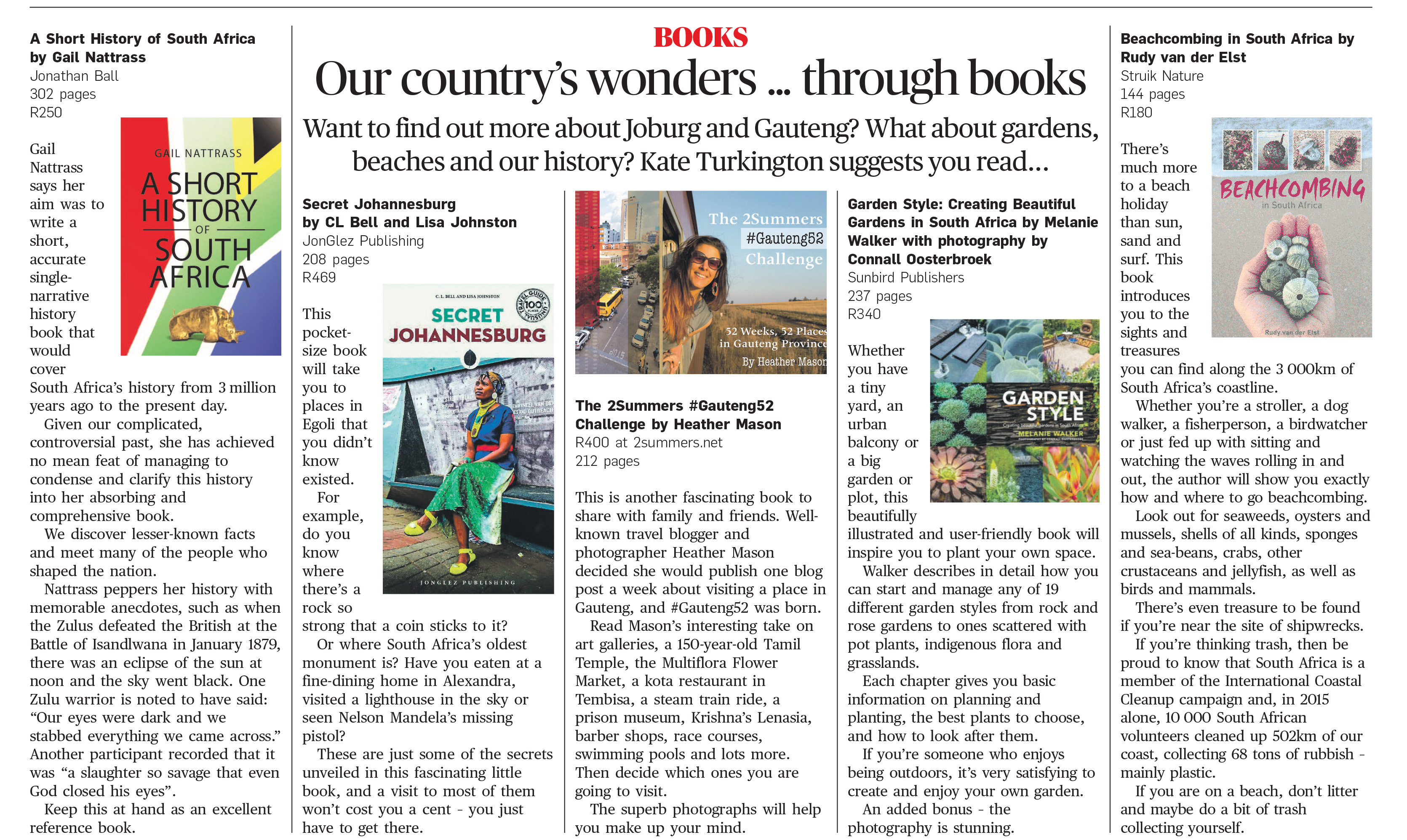 Also, legendary travel writer Kate Turkington wrote a quick review of the book in the City Press newspaper last Sunday. Thanks Kate, you rock.